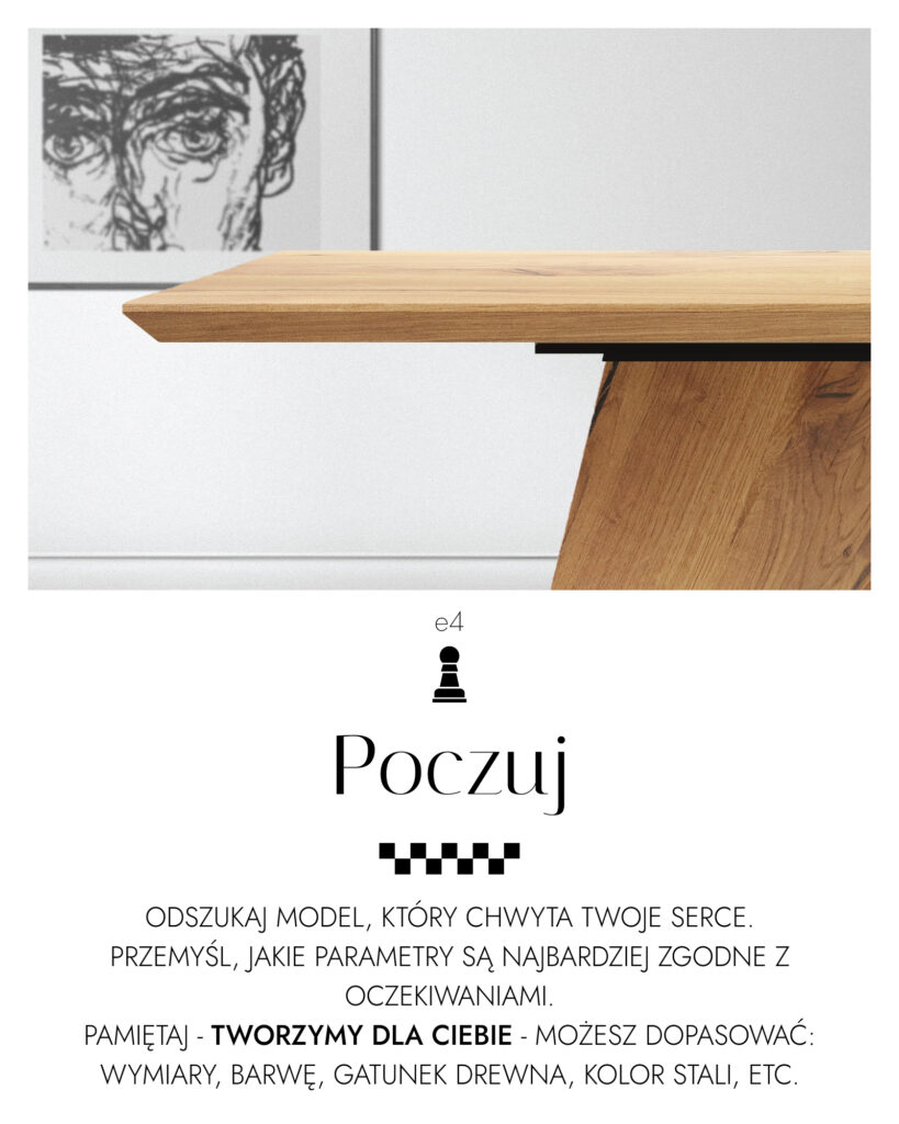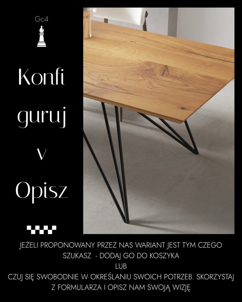 Zostaw informację o gatunku drewna, niestandardowych wymiarach, rodzaju krawędzi blatu, kolorze wosku/lakieru i wykończeniu stali. Na tej podstawie przygotujemy dopasowaną konfigurację i indywidualną wycenę.